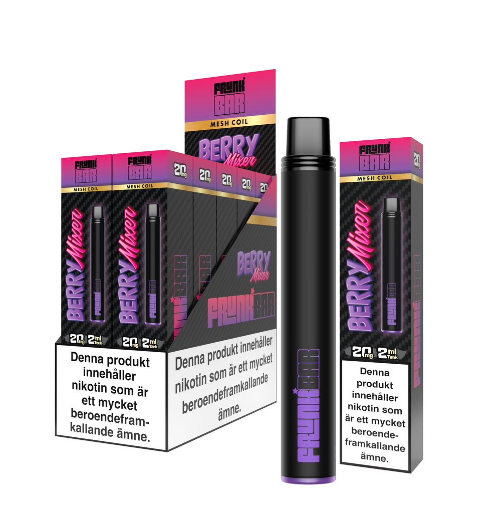 Frunk Bar kommer förfylld med 2ml 20mg premium nikotinsalt e-juice.