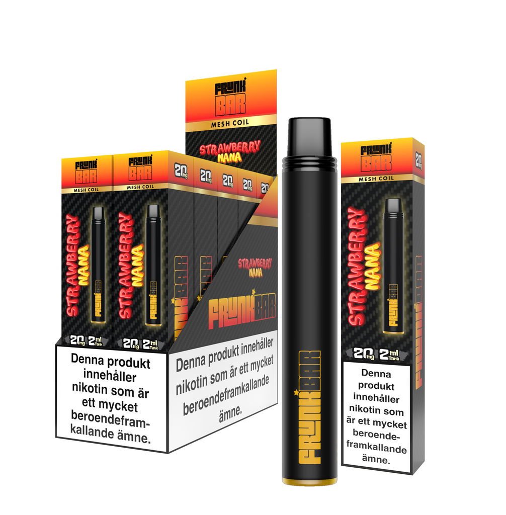 Frunk Bar kommer förfylld med 2ml 20mg premium nikotinsalt e-juice.